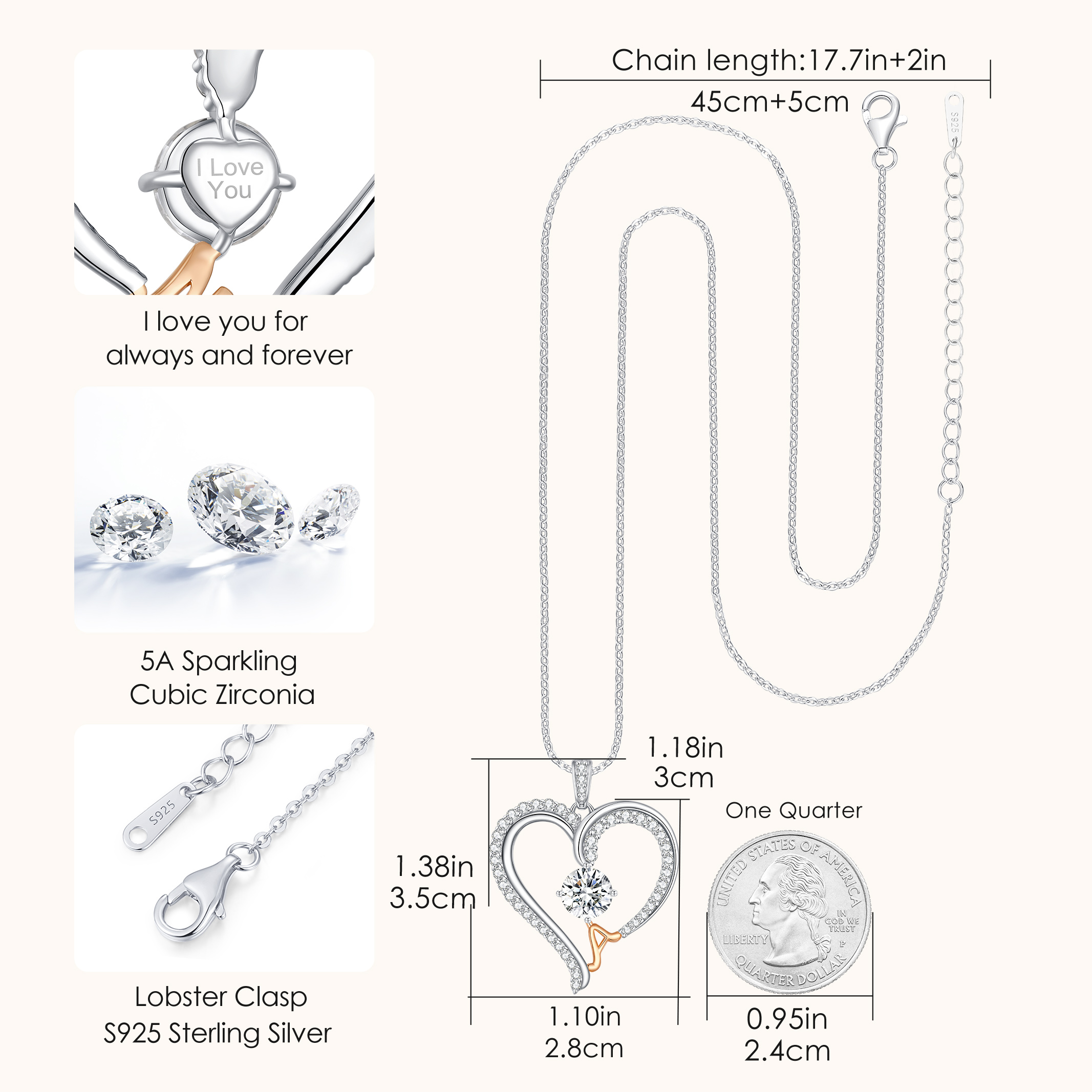 Gorgeous Love Heart Initial Necklaces for Women, 925 Sterling Silver Fine Jewelry, Pendant Heart Necklaces Birthday Anniversary Christmas Gift for Women Wife Mom Girlfriend Lady