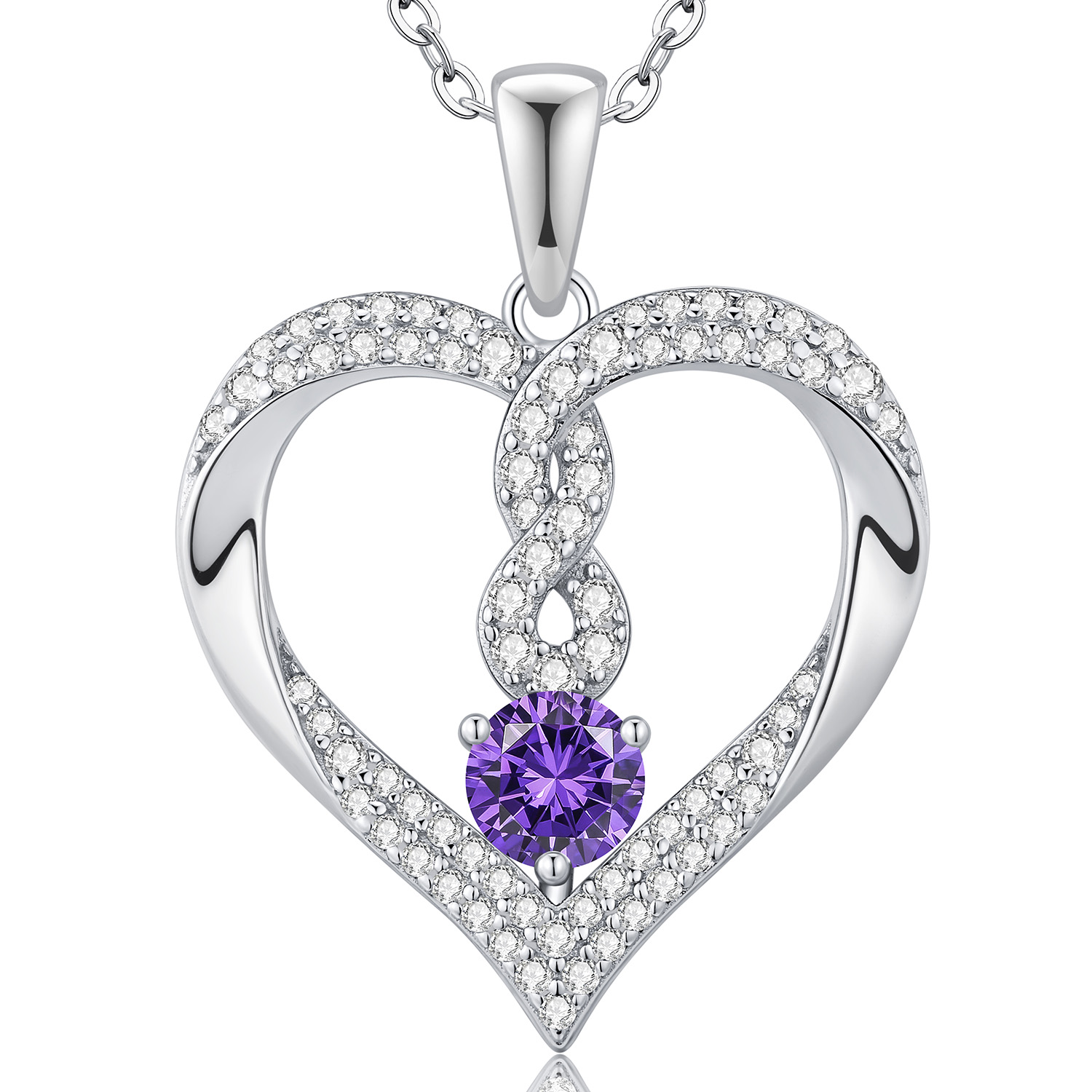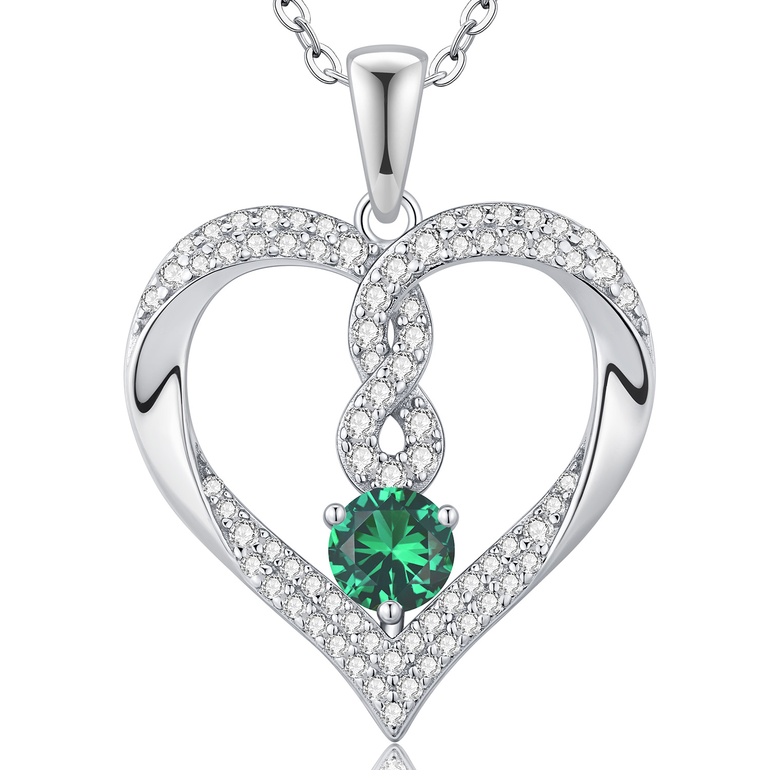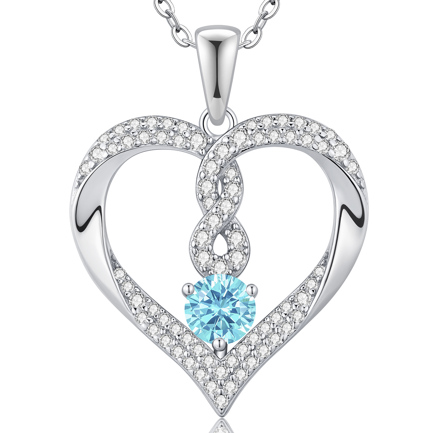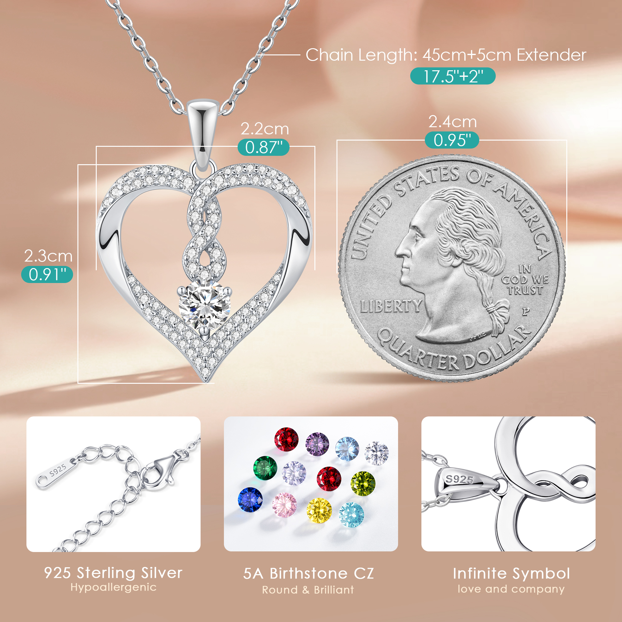 Sparkling Double Heart Birthstone Necklaces for Women, 925 Sterling Silver Fine Jewelry, Pendant Hea