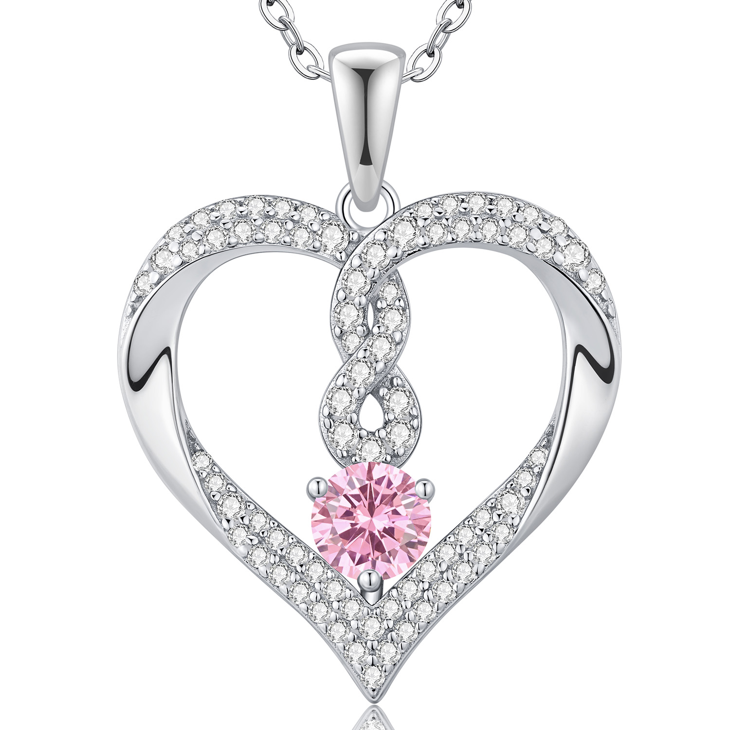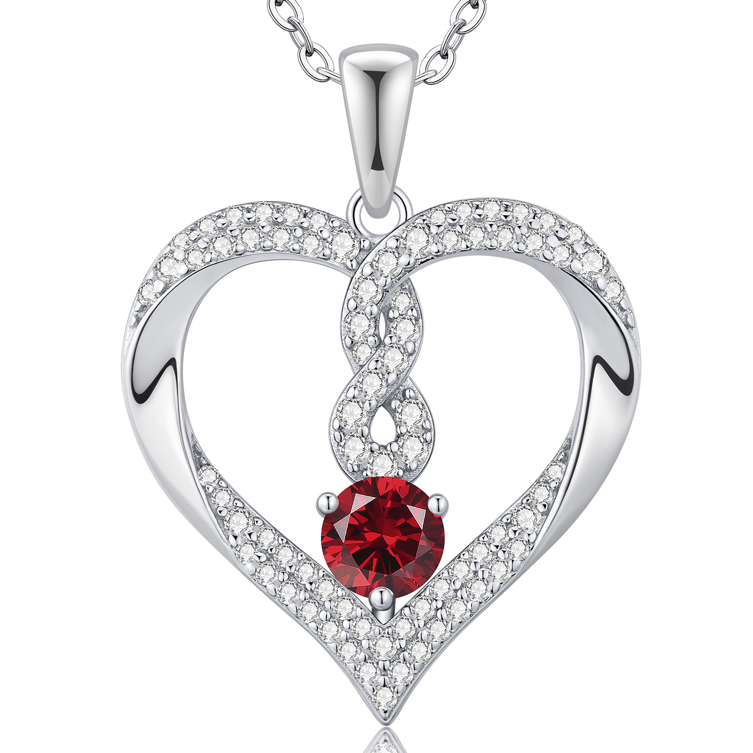 Rose Flower Heart Birthstone Necklaces for Women, 925 Sterling Silver Fine Jewelry, Pendant Heart Ne