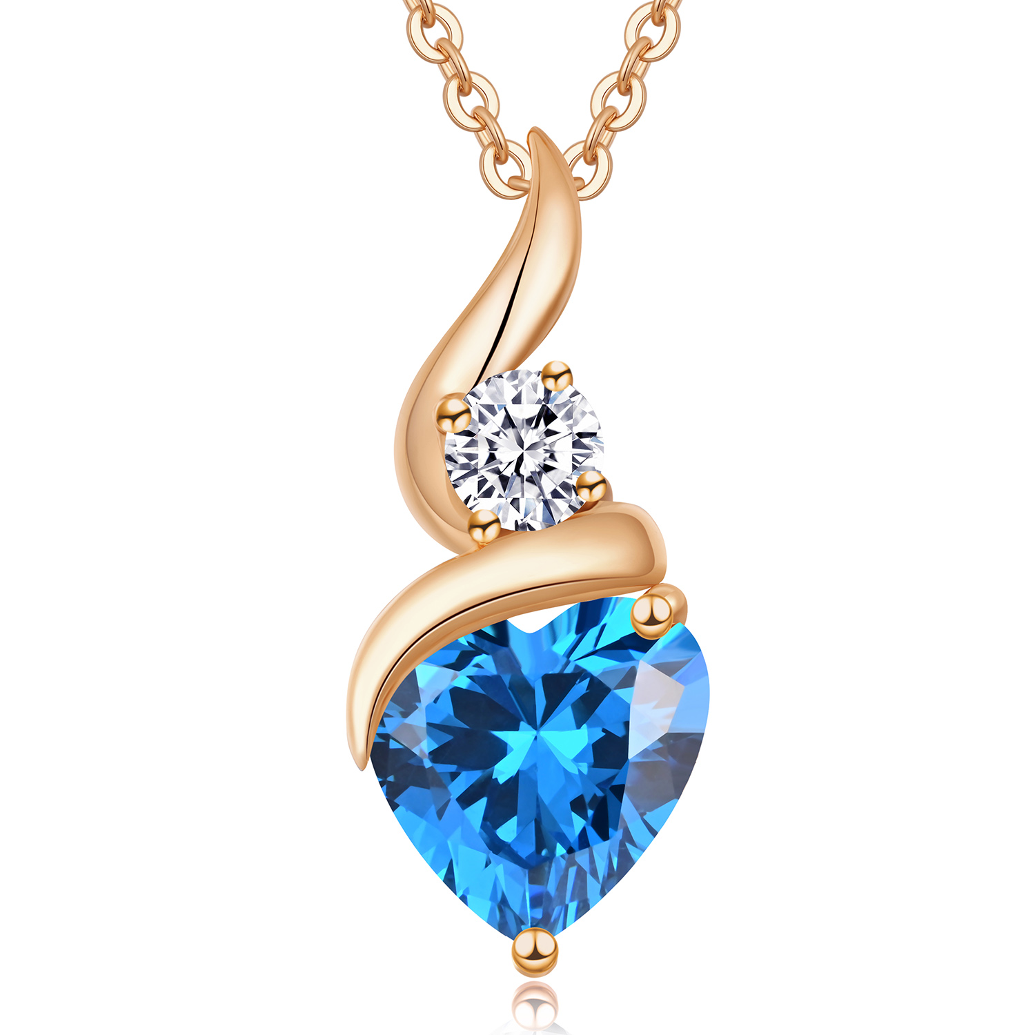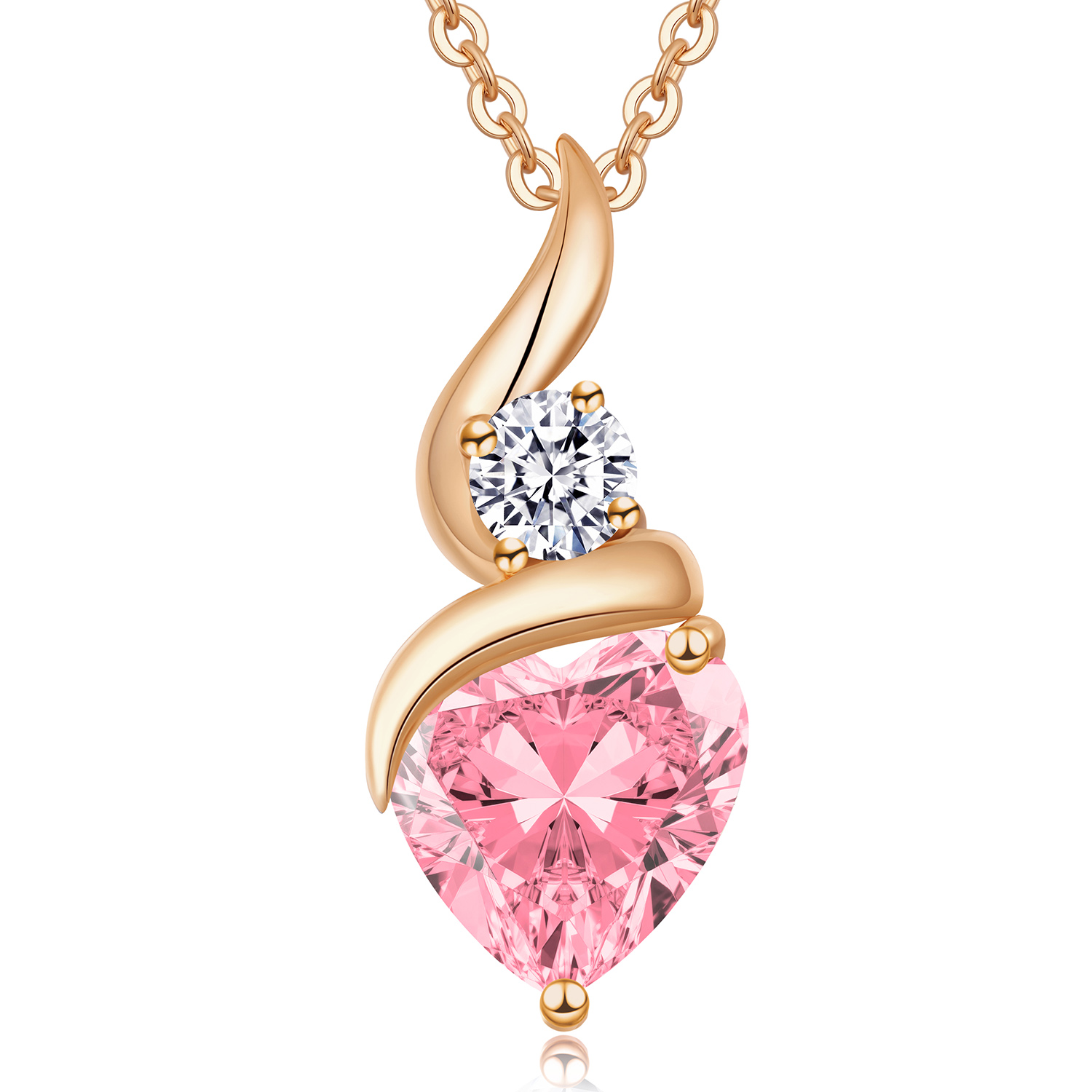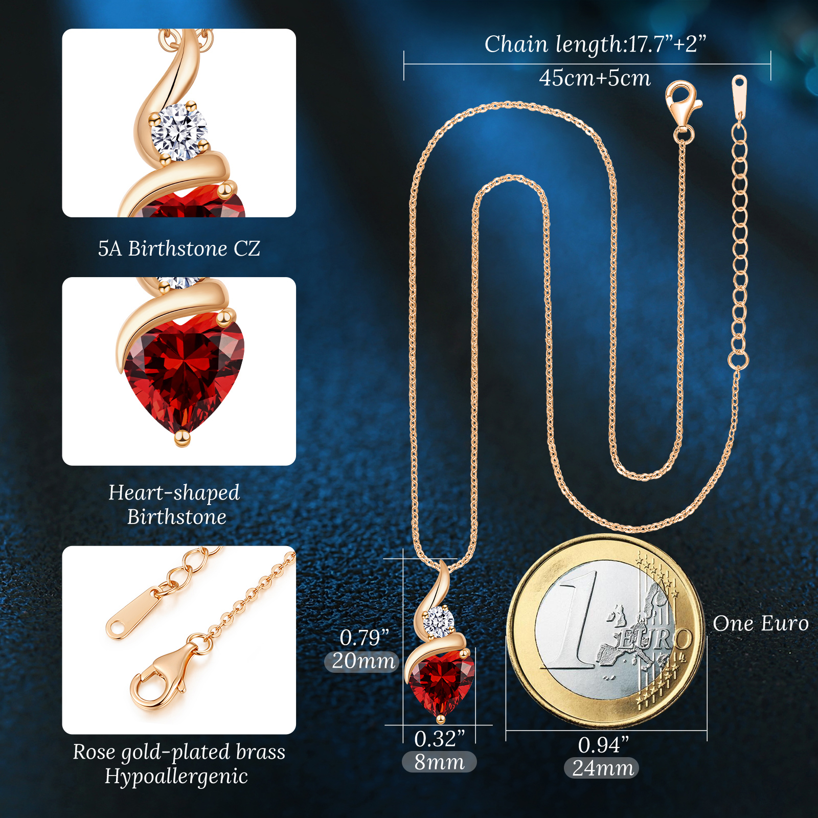 Rose Flower Heart Birthstone Necklaces for Women, 925 Sterling Silver Fine Jewelry, Pendant Heart Ne