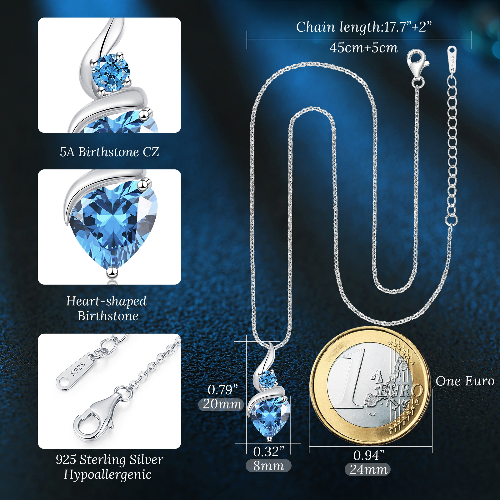 Sparkling Double Heart Birthstone Necklaces for Women, 925 Sterling Silver Fine Jewelry, Pendant Heart Necklaces Birthday Anniversary Christmas Gift for Women Wife Mom Girlfriend Lady