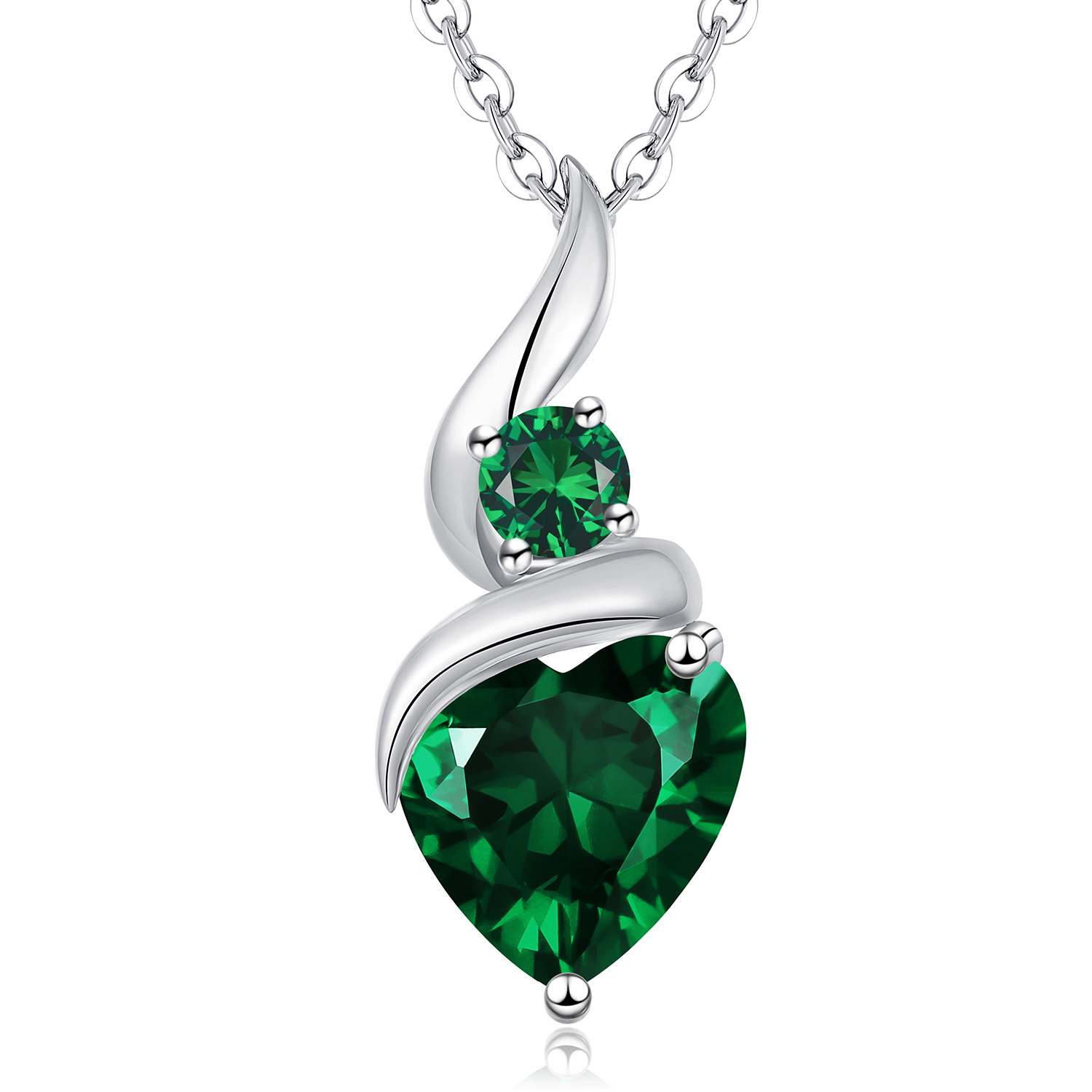 Sparkling Double Heart Birthstone Necklaces for Women, 925 Sterling Silver Fine Jewelry, Pendant Hea