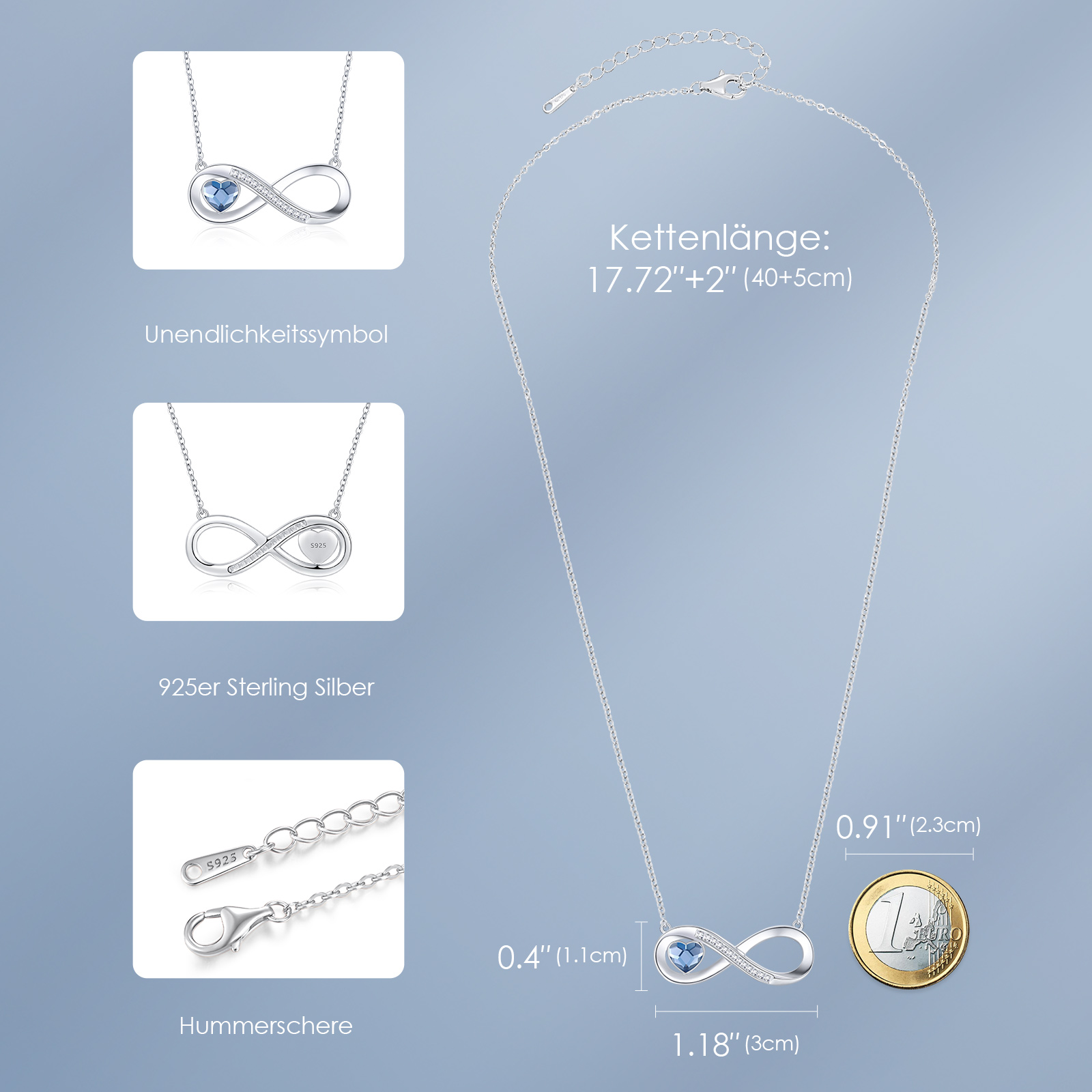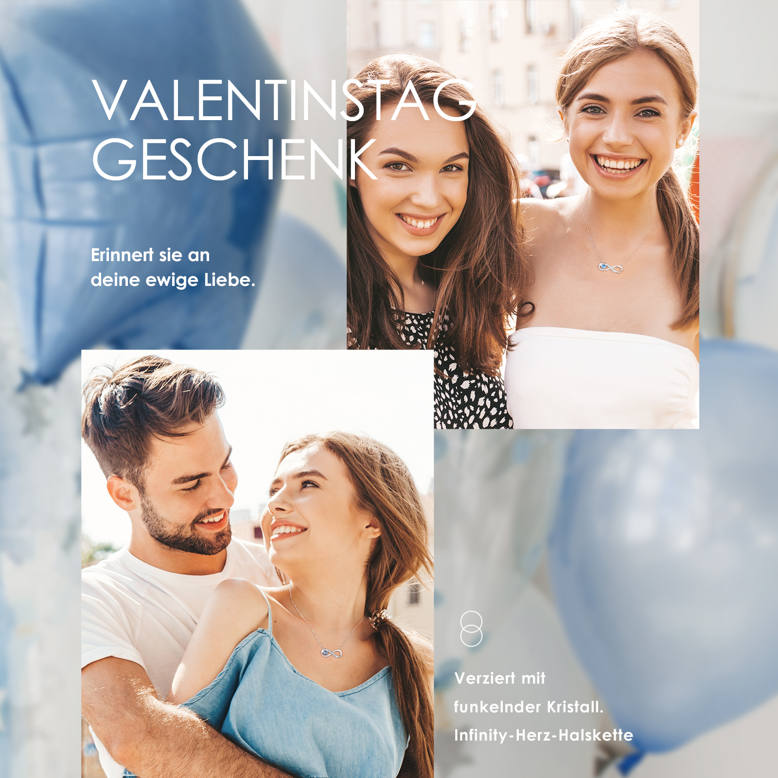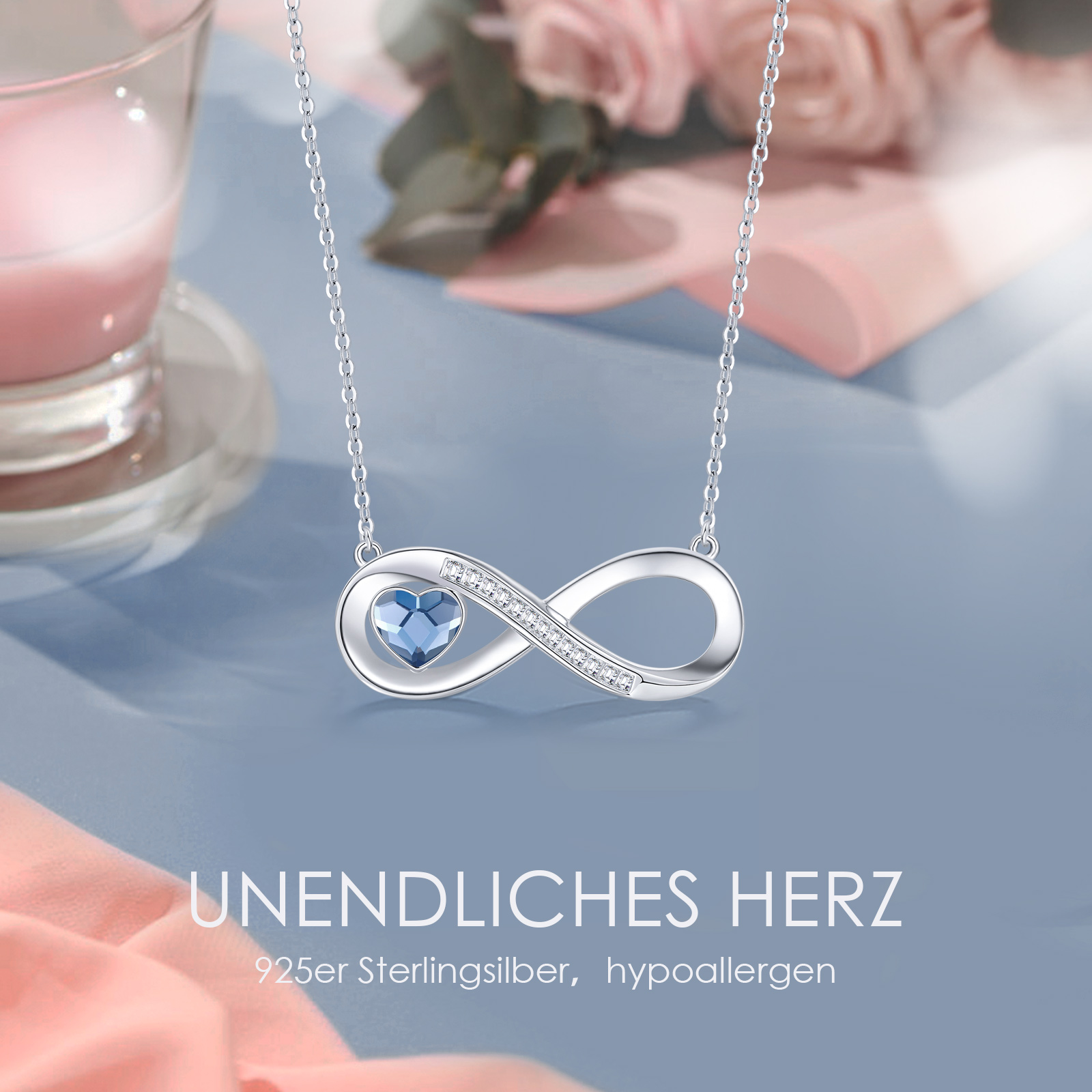 Women's Infinity Heart Necklace,, Crystal Chains Pendant with Cubic Zirconia, Birthday, Valentine's Day, Christmas, Mother's Day, Jewellery Gifts for Women, Girlfriend, Wife, Mum,