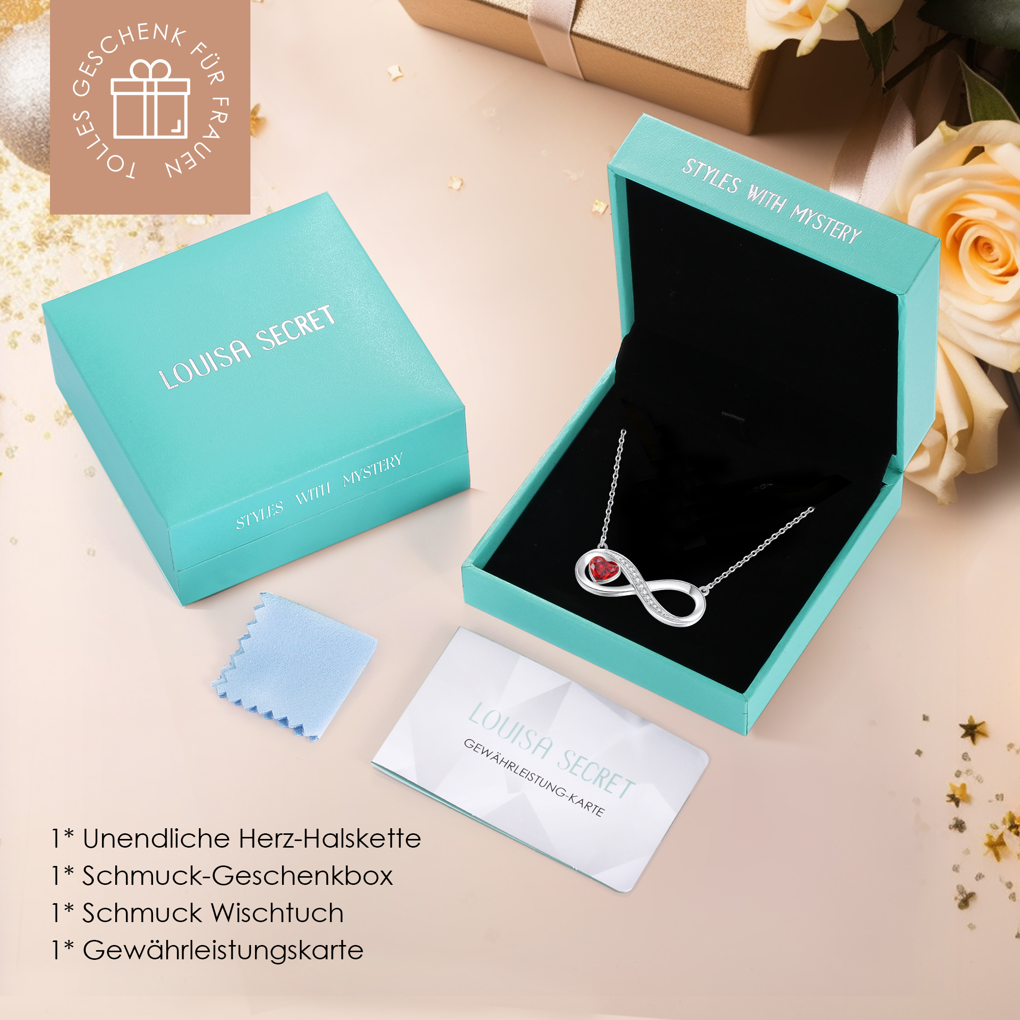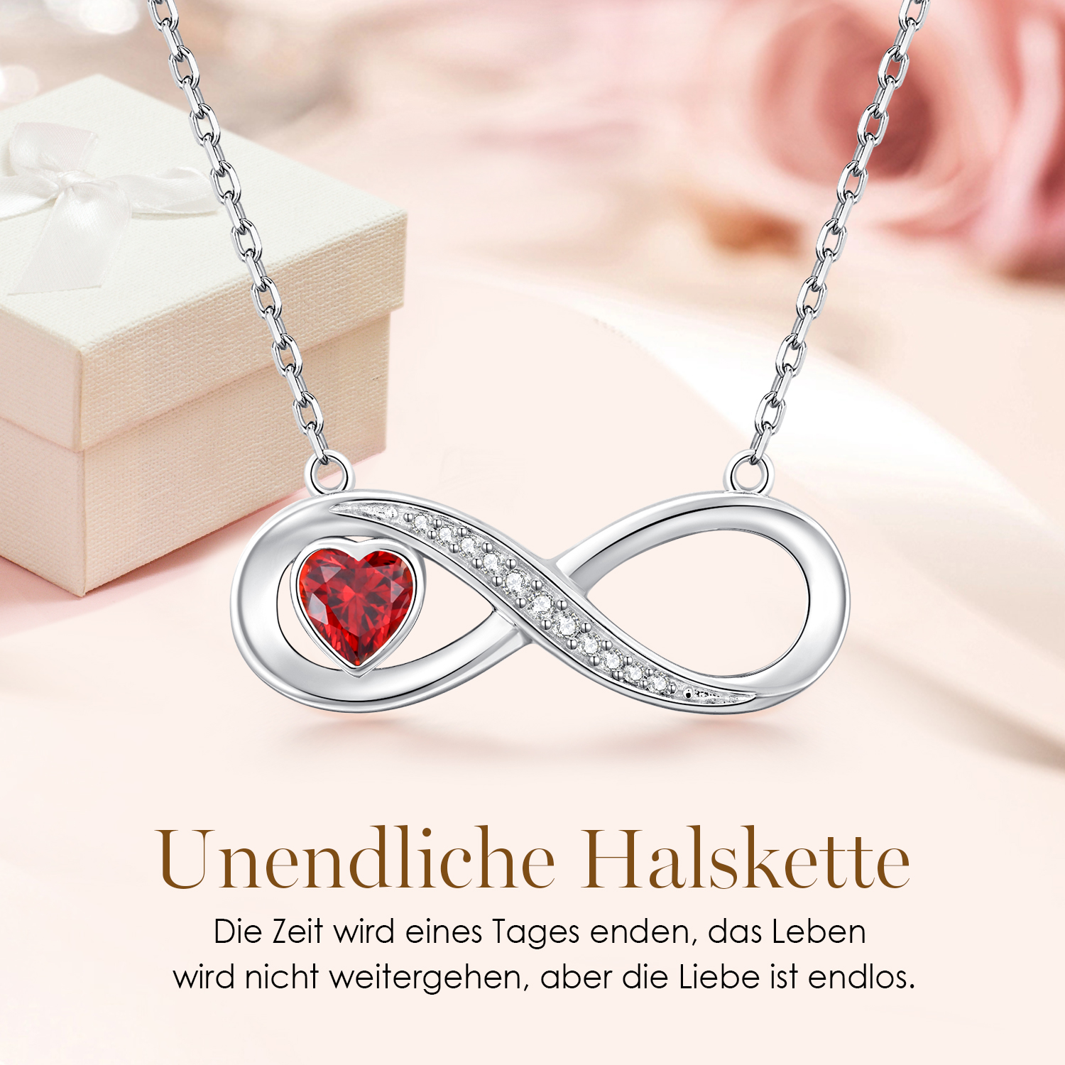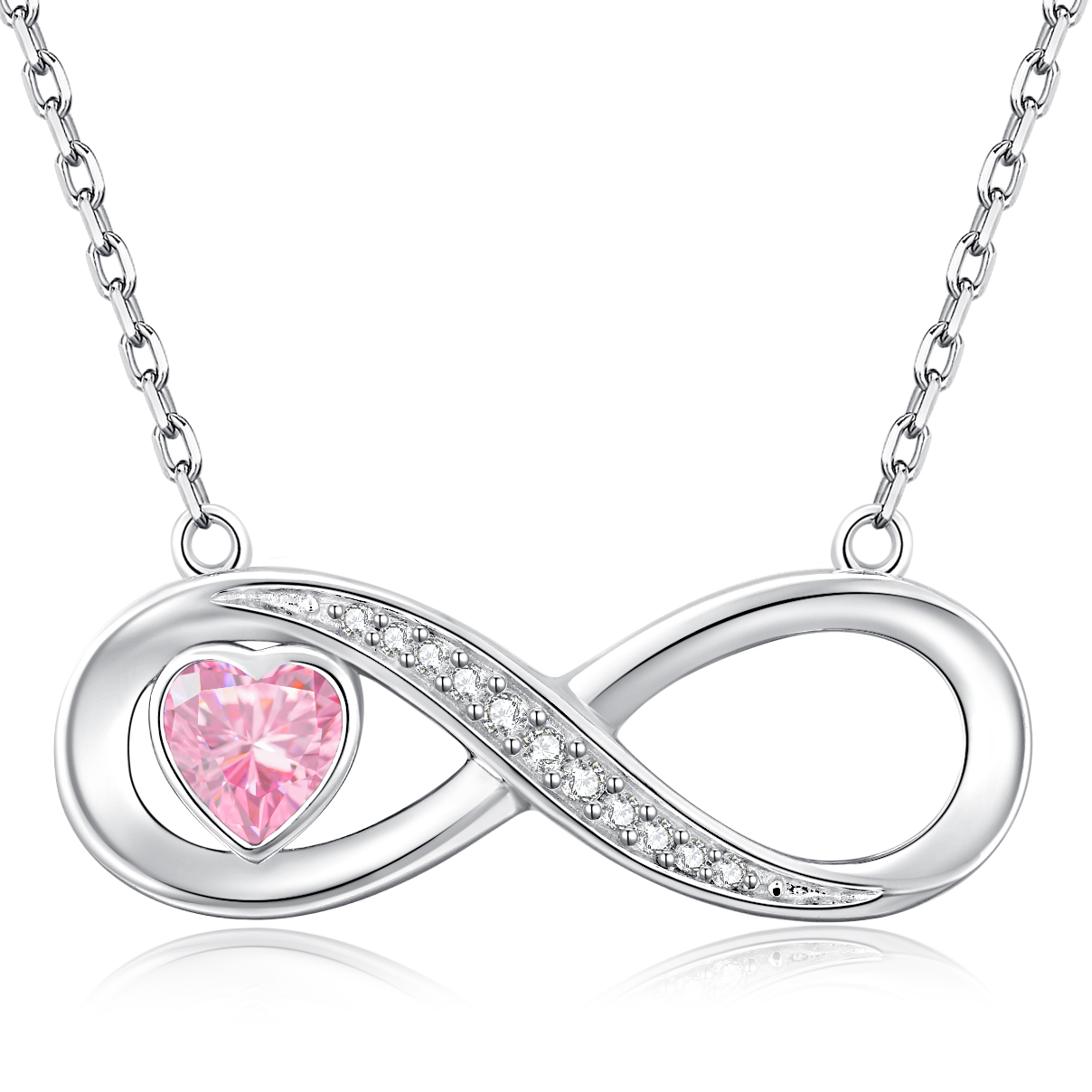 Rose Gold Infinity Heart Necklace for Women, Adjustable Chain 925 Silver Link Birthstone Bracelets,