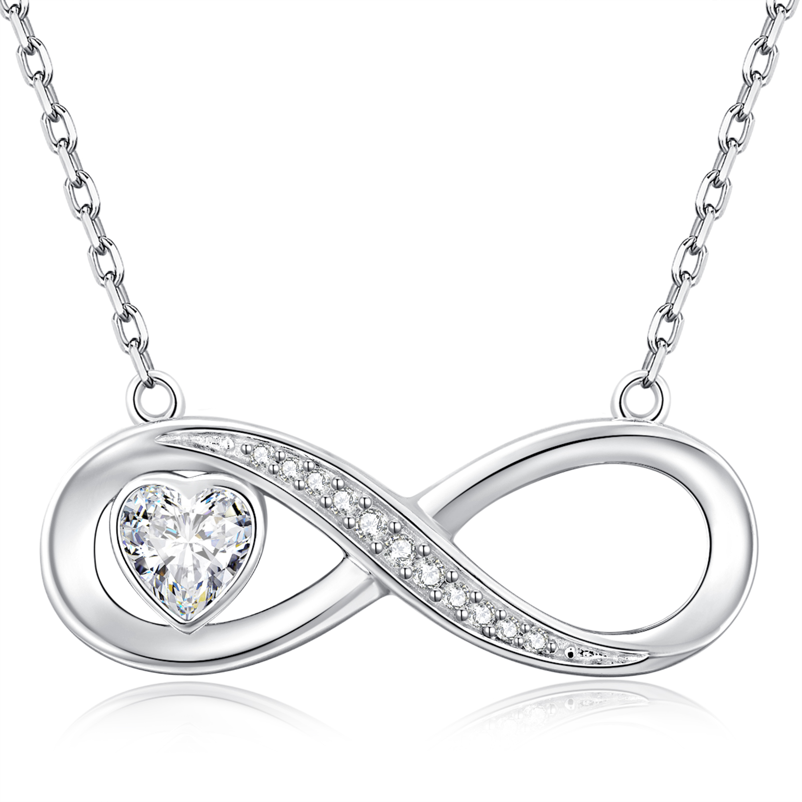 Women's Infinity Heart Necklace, 925 Sterling Silver,Chains Pendant with Cubic Zirconia, Birthday, Valentine's Day, Christmas, Mother's Day, Jewellery Gifts for Women, Girlfriend, Wife, Mum,